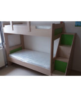Χαμηλή κουκέτα με συρόμενο το 2ο κρεβάτι , 2 συρτάρια για αποθηκευτικό χώρο , ξύλινο κάγκελο και μικρή ξύλινη σκάλα με αποθηκευτικό χώρο.
